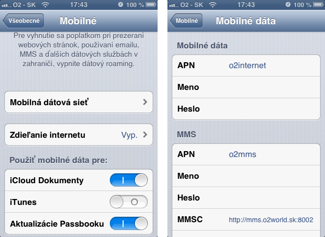 - Otvorte položku Mobilná dátová sieť / Mobilní datová síť