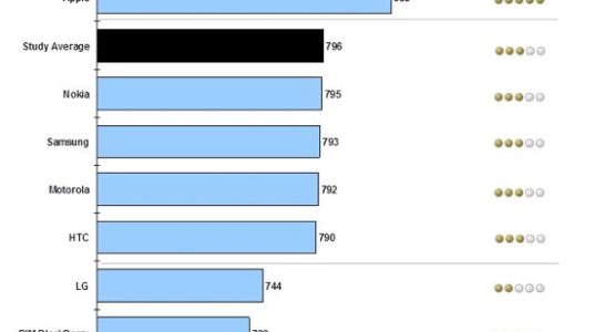 Apple se v tomto průzkumu umístil na prvním místě a to s vysokým rozdílem oproti konkurenci. Zatím co průměrné hodnocení bylo 796 bodů, a je nutné dodat, že jej zvedl právě Apple, měla společnost s nakousnutým jablíčkem v logu hodnocení 855 bodů. Druhá Nokia pak nabídla 795 bodů a třetí Samsung 793. Více informací o průzkumu se dočtete přímo zde.