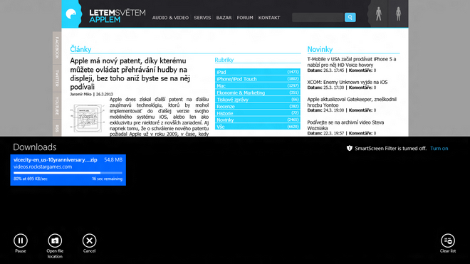 Iste sa to dalo čakať. Internet Explorer je aj naďalej súčasťou systému Windows, a tentoraz sa dočká väčšej aktualizácie v podobe verzie 11, ktorá bude zrejme určitú dobu dostupná exkluzívne pre používateľov novšieho update. Ako sa zdá, nová verzia Exploreru už nebude slúžiť len na stiahnutie konkurenčného prehliadaču. Internet Explorer 11 by mal podľa všetkého využívať nový engine, na ktorom je postavený aj populárny Mozilla Firefox. Okrem tejto zmeny je navyše v programe pozorovať ďalšiu zmenu, respektíve v jeho modernej verzii. Microsoft sa rozhodol, že aj s touto verziou bude možné plnohodnotne sťahovať súbory a preto v ňom už môžeme nájsť aj plnohodnotného správcu sťahovania, v ktorom sú možnosti ako otvoriť priečinok so súborom, pozastavenie či zrušenie sťahovania samozrejmosťou.