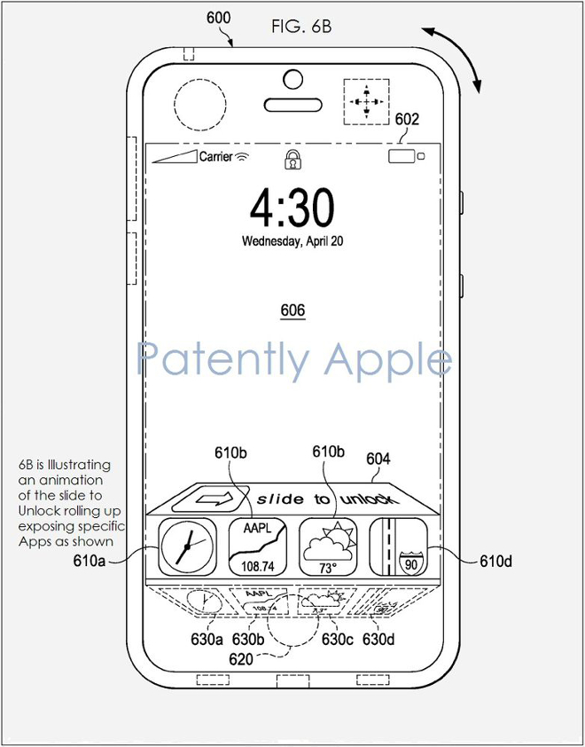 V tomto prípade by sa však jednalo len o niekoľko predvolených aplikácií, ktoré by do skrytého menu ukryl Apple, pričom tieto aplikácie by bolo možné spustiť aj bez potvrdenia bezpečnostného kódu. V budúcnosti by sme tak mohli otvárať zo zamknutej obrazovky prakticky všetky predinštalované programy systému iOS, ktoré nemajú čo dočinenia so súkromím používateľa, ako napríklad s kontaktmi, SMS správami alebo e-mailovou schránkou. Patentové nákresy zobrazujú mimo iného tiež niekoľko vizuálnych podôb dodatočného prostredia, ktorého náznaky môžeme vidieť už dnes. Nákresy totiž zahŕňajú aj možnosť otvorenia fotoaparátu a ako môžete vedieť, bol to práve Apple, ktorý pridal možnosť spustenia fotoaparátu zo zamknutej obrazovky do systému iOS 5. Zaujímavé vizualizácie sú navyše doplnené aj o priehľadný prvok v pozícii Home Buttonu a je tak možné, že Apple v budúcnosti symbolické, fyzické tlačítko v spodnej časti obrazovky nahradí virtuálnym, čím by umožnil aj napríklad zväčšiť obrazovku, ako aj ponúknuť riešenie, aké môžeme nájsť u množstva telefónov so systémom Android alebo Windows Phone.