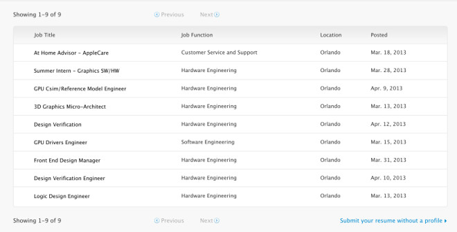 Zdá sa, že v budúcnosti mobilné procesory Apple Ax, ktoré nájdeme vo všetkých iOS zariadeniach počnúc iPhone 4, nebude vyrábať ani Samsung, ani TSMC, ale Apple samotný. Spoločnosť totiž na svojej stránke s pracovnými ponukami zverejnila niekoľko pracovných ponúk, ktoré svedčia o tom, že Apple zrejme bude úplne sám pracovať na vývoji mobilných čipov vo vývojárskom laboratóriu na Floride, v meste Orlando. Nejedná sa navyše o jedinú pracovnú ponuku v tomto štáte, Apple už hľadal pracovníka, ktorý by sa tu podieľal na technológii odtlačkov prstov.