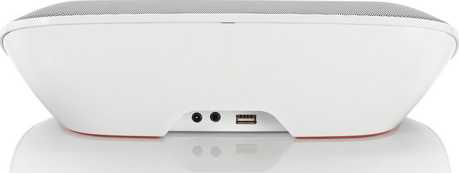 V spodnej časti zadnej strany prístroja sa nachádza trojica portov, ktoré v tomto prípade na prístroji nezavadzajú a dodávajú mu pocit čistého dizajnu. Konkrétne sa jedná o porty pre AC adaptér, 3.5mm audio jack a nakoniec svoju prítomnosť prezentuje aj USB port, ktorý poslúži na pripojenie starších zariadení, ktoré disponovali 30-pinovým Dock konektorom. Balenie reproduktoru je skutočne vecné, miesto desiatok strán manuálov v ňom totiž nájdeme len dock, adaptér a záručný list. OnBeat Mini obsahuje vstavanú batériu, ktorá vydrží až osem hodín nepretržitého prehrávania hudby, avšak v závislosti od hlasitosti prehrávanej hudby. Už pri pomyslení na skutočnosť, že sa jedná o dock, je samozrejmé, že pripojením iPodu nano či akéhokoľvek aktuálneho iOS zariadenia bude možné zariadenia nabíjať. To je fakt, avšak udeje sa tak len v prípade, že je JBL OnBeat Mini pripojený k zdroju napájania. Pre tento prípad sa rozhodla spoločnosť do európskeho balenia pribaliť koncovky typov Schuko a BS-1363.