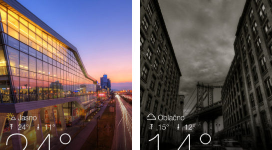 Narozdiel od klasickej aplikácie si vás totiž Yahoo! Weather získa veľmi moderným a intuitívnym prostredím, ktoré vo svojom základe na obrazovke telefónu zobrazí čas, vašu polohu a nakoniec teplotu. To všetko je však obohatené obrázkom na pozadí, ktorý pochádza práve z vášho mesta, alebo z oblasti, ktorá sa blízko vás nachádza. V tomto ohľade služba využíva obrázky zo siete Flickr, na čo konieckoncov aplikácia upozorňuje v pravom dolnom rohu obrazovky. Yahoo! sa rozhodlo aplikáciu obohatiť o veľmi jednoducho ovládateľné prostredie, ktoré ovládate pohybom prstu doľava, doprava, nahor a nadol. Pohybom prstu nadol zobrazíte veľmi zaujímavé detaily o počasí, ktoré tentoraz okrem predpovede na ďalších 5 dní nájdeme aj položku niekoľko ďalších sekcii, ktoré zahŕňajú mapu, úroveň zrážok, vietor, tlak a ako bonus aj polohu slnka na oblohe a stav mesiaca. Tieto bonusové položky je možné po obrazovke presúvať, k čomu stačí potiahnuť položku za pravý horný roh, označený sériou bodiek.