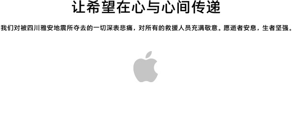 Apple spolu s týmto aktualizoval oficiálny čínsky web, na ktorý umiestnil správu, v ktorej vyjadril sústrasť voči tamojším ľuďom: „V týchto ťažkých časoch, naše srdcia súcitia s obeťami zemetrasenia v Sečuáne. Popri finančnom dare, ktorý má za cieľ pomôcť postihnutým ľuďom aby prekonali ťažkú situáciu, zaviazali sme sa poskytnúť nové Apple zariadenia školám v postihnutej oblasti, a zamestnanci Applu v lokalite sú pripravení kedykoľvek pomôcť.“