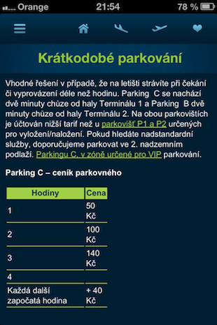 To že se jedná o oficiální aplikaci je podstatné, data nejsou přejímána přes jakékoli prostředníky a další server, to co je napsané ve vašem telefonu vždy souhlasí s tím co hlásí letištní tabule. Samozřejmě se dozvíte také o zpoždění nebo zrušení letu a to jak u odletů, tak i příletů. Aplikace dále umožňuje přímé sledování daného letu a upozornění na změny v jeho statusu pomocí oznámení. Samozřejmostí jsou pak veškeré potřebné informace od oficiálních kontaktů, přes ceny parkovného v jednotlivých parkovištích, až po informace o jednotlivých obchodech.