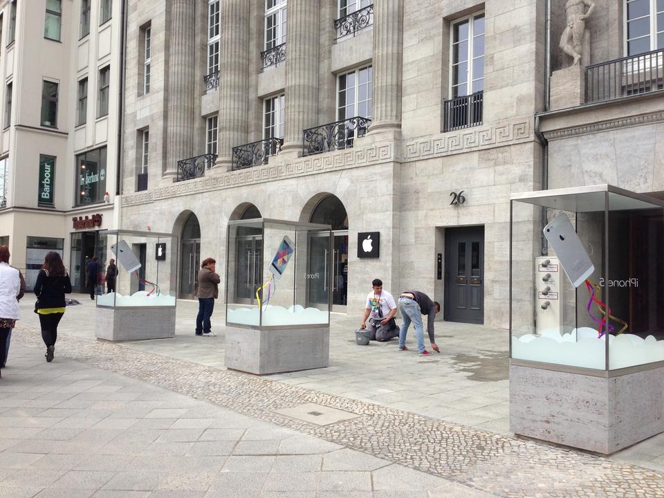 Již tento pátek, tedy 3. 5. 2013 se otevřou brány nového Apple Store v Berlíně. Na otevření obchodu již nyní lákají vitríny s iPhone 5. O tom, že to Němci s otevřením nového Apple Store myslí skutečně vážně svědčí také fotografie, na kterých je jasně vidět, jak čistí chodník před samotným obchodem, zkrátka v pátek musí být vše zcela dokonalé. Pokud si chcete udělat do Apple Store výlet, určitě se vyplatí do něho zavítat již v pátek v době otevření, kde jako při každém otevření nového Apple Store obdržíte trička s logem společnosti Apple, které není možné sehnat nikde jinde, než při otevření nového Apple Store a to zcela zdarma.