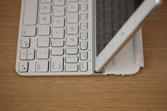 Zpracování klávesnice je na poměrně vysoké úrovni a vše vypadá skutečně pěkně, na prnví pohled je vidět, že se klávesnice k iPadu mini hodí. Osobně si nedovedu představit nejen využití klávesnice, ale ani přenášení. Pokud totiž musím při každém otevření iPadu dávat pozor, že klávesnice upadne, mohu si rovnou vzít jakoukoli normální klávesnici. Samozřejmě zde jde o velikost a váhu, na druhou stranu tím chci podtrhnout fakt, že klávesnice se sice s iPadem tváří jako jeden kus, ale ve výsledku vysí toto jejich přátelství na velmi, ale skutečně velmi tenké niťce. Osobně vše vnímám tak, žep okud skutečně potřebuji používat klávesnici a psát dlouhé texty, raději si k iPadu mini vezmu jakoukoli běžnou BT klávesnici, na které se mi pohodlně píše, jinak se raději obejdu bez ní. V případě iPadu s 9,7″ displejem však již klávesnice díky jinému rozložení kláves a větším klávesám dává skutečně význam.