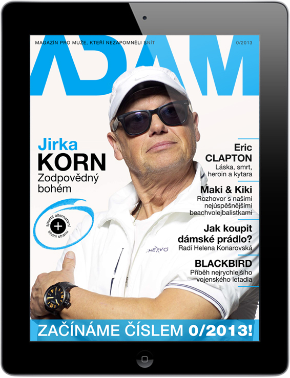 Pilotní neboli nulté vydání magazínu ADAM uvádí Jiří Korn. Pan Korn uvítá čtenáře magazínu již na titulní straně, a to velice originálním způsobem, který zatím nemá v ČR obdoby. Maga- zín nabízí hlavní a alternativní titulní stranu – druhou verzi lze spustit vyznačeným tlačítkem. Kromě rozhovoru s panem Kornem nabízí nulté vydání článek o Ericu Claptonovi, návštěvu řeckého ostrova Karpathos s obsáhlou fotogalerií, příběh letounu Lockheed SR-71 Blackbird a legendárního vozu Land Rover Defender, rozhovor s naší nejpůvabnější beachvolejbalovou dvojicí Maki a Kiki, rady paní Heleny Konarovské ohledně nákupu spodního prádla pro ženy a mnoho dalšího.