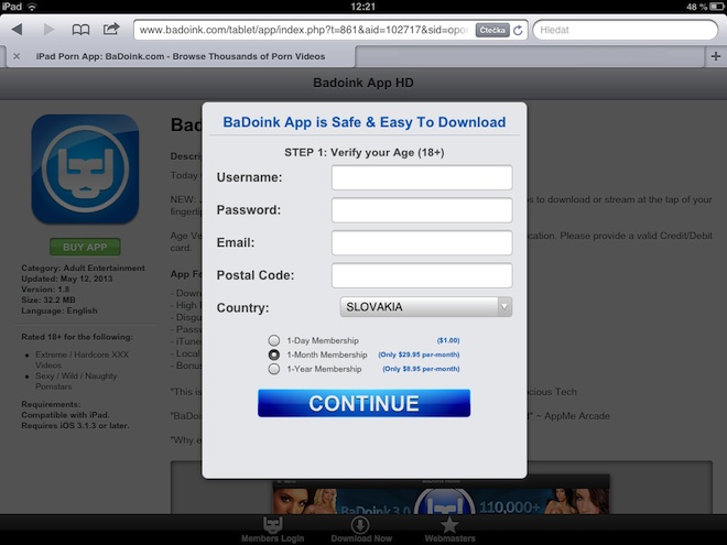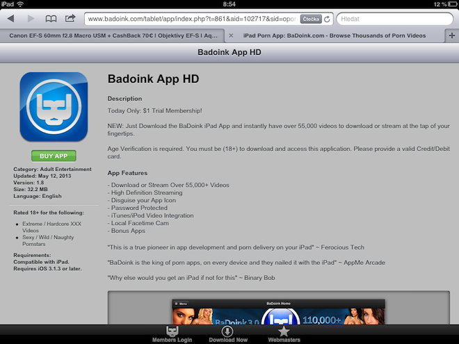 Poté co naleznete banner odkazující na aplikaci, jste přesměrování na stránky, které se tváří jako oficiální stránky společnosti Apple prezentující danou aplikaci na iTunes App Store. Méně zkušený uživatel v podstatě nemá šanci rozeznat, že je tato stránka falešná a nejedná se o oficiální stránky Applu. Jakmile si přečtete informace o aplikaci stejně jako u oficiálních stránek a rozhodnete se kliknout na tlačítko buy nebo download, jste upozorněni, že kvůli explicitnímu obsahu nebo kvůli obsahu, který by nebyl pro iTunes Store normálně schválen, musíte zaplatiti poplatek za stažení aplikace mimo běžné platební metody Applu. Právě zde nastává problém, jakmile zaplatíte samozřejmě nejen že přijdete o své peníze, ale samozřejmě nedostanete slibovanou aplikaci. Tu totiž není jak sami tušíte možné nainstalovat, jelikož není v iTunes App Store.