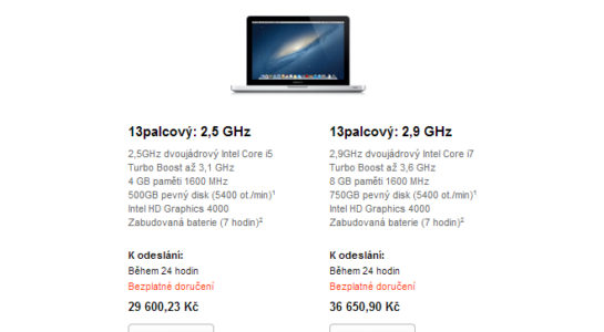 Dá sa povedať, že dnešný deň je veľmi bohatý na novinky v oblasti produktov Apple. Spoločnosť dnes oslávila 100 miliónov predaných iPodov touch vydaním lacnejšieho 16GB modelu iPod touch. Popri nej sa však rozhodla zlacniť klasický 13-palcový MacBook Pro pre vzdelávacie účely. Zastávame názoru, že Apple tieto počítače zlacnel najmä kvôli blížiacej sa aktualizácii všetkých MacBookov Pro a Air na konferencii WWDC 2013. Po novom je možné MacBook Pro na vzdelávacie účely získať už od 29 600Kč.