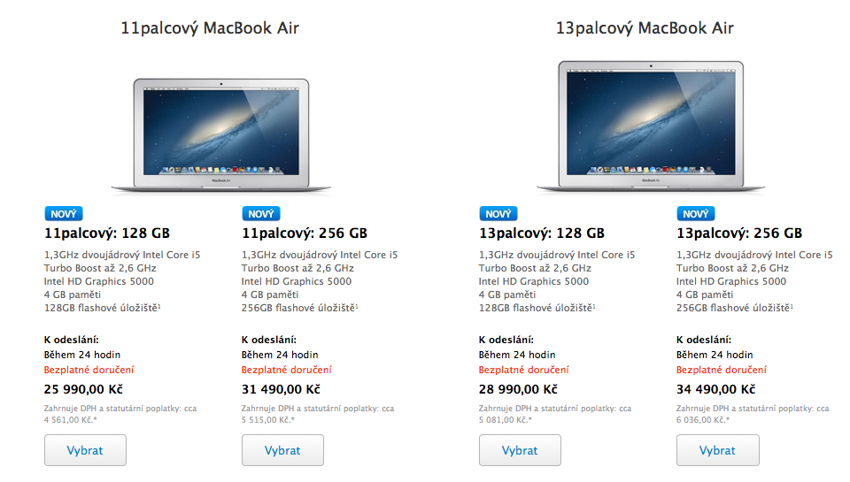 Apple.cz již nabízí k prodeji nové MacBook Air a samozřejmě uvedl také jejich ceny. Základní model tak můžete zakoupit již za 25 990Kč