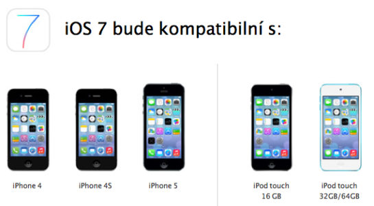 Apple samozřejmě jako každá jiná společnost na světě nemůže novou verzí operačního systém iOS podporovat všechny své zařízení. S představením iOS 7 tak nastala otázka, jaké zařízení bude Apple podporovat u nejnovější verze operačního systému iOS a jakých se dočkají omezení. Společnost kupodivu podpoří poměrně velké množství zařízení a iOS 7 si nainstalujete na iPadu 2. generace, iPadu 3. generace, iPadu 4. generace, iPadu mini, iPhone 4, iPhone 4s, iPhone 5 a iPod touch 5. generace. Zatím co Apple podporuje iPhony a iPady poměrně dlouho do minulosti, v případě iPodu touch je situace zcela jiná a iOS 7 si nainstalují pouze majitelé nejnovější generace.