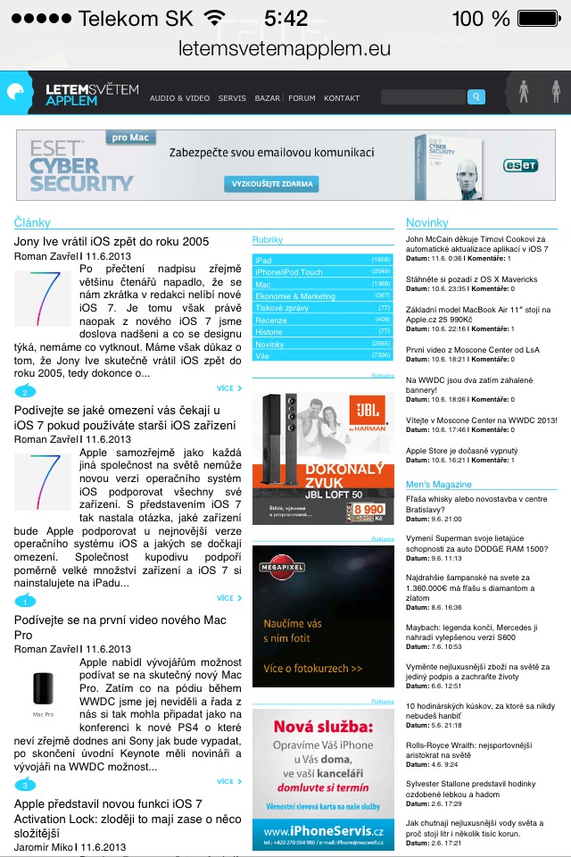 Mam vyfoceny 2 totozny screenshoty z iOS 6 a iOS 7, furt to davam tam zpet tam zpet a furt nevim co je lepsi :D Ale 100% to bude tak jako vzdy, az budu mit iOS 7 a ohlidnu se zpet na iOS 6 a niz, bude se mi to zdat skaredsi :D Co me pri pohledu na ty screenshoty hodne zarazi je mala pruhlednost tech oken v prehravaci, nebo pri zesilovani… Je to moc šedy a malo pruhledny… To se mi vubec nelibi… Jinak s celou keynote sem maximalne spokojenej, vsechno se podarilo Applu utajit, Macbook Air baterka uzasny, MacPro bomba :D OS X tesim se a na iOS jeste vic :)