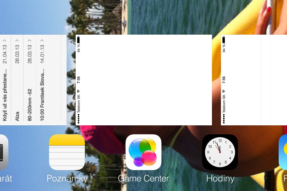 Multitasking funguje v iOS 7 i v landscape módu, což je poměrně zajímavé zejména vzhledem k tomu, že množství aplikací tento mód vůbec nepodporuje. Například Hodiny nebo Game Center se tak vůbec nezobrazí.