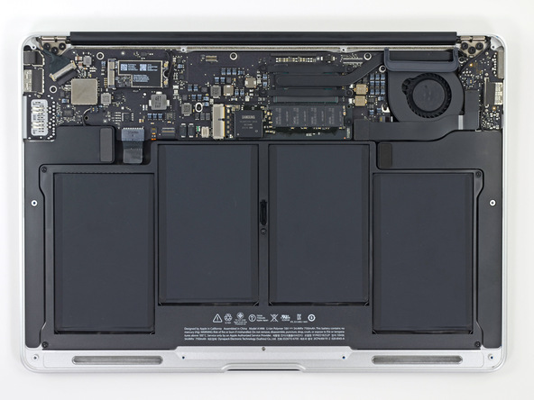 Server uvidel prvé zmeny oproti minuloročnému modelu už po odklopení spodného krytu. Pri tomto pohľade sa ľudia môžu stretnúť s viditeľne menšími komponentami, ktoré zahŕňajú vstavané Flash úložisko aj nový WiFi modul s podporou 802.11ac. Zároveň je viditeľné, že si Apple išiel za cieľom „celodennej výdrže batérie“ za každú cenu a preto okrem nového procesoru Intel Haswell a výkonnejšieho SSD nájdeme aj väčšiu batériu. Zatiaľ čo predošlý model poskytoval 6700mAh pri napätí 7,3V, model pre rok 2013 obsahuje novšiu batériu, ktorá poskytne 7150mAh pri napätí 7,6V.