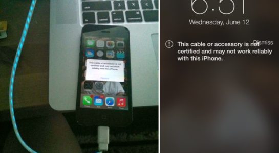 „Tento kábel alebo príslušenstvo nie je certifikované a nemusí fungovať spoľahlivo s týmto iPhonom.“ Napriek tejto správe sa ale používatelia stretli s tým, že neautorizované príslušenstvo bezproblémovo funguje s telefónmi, čo potvrdzuje aj skutočnosť, že zariadenie s iOS 7 je schopné toto príslušenstvo detegovať.