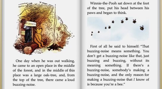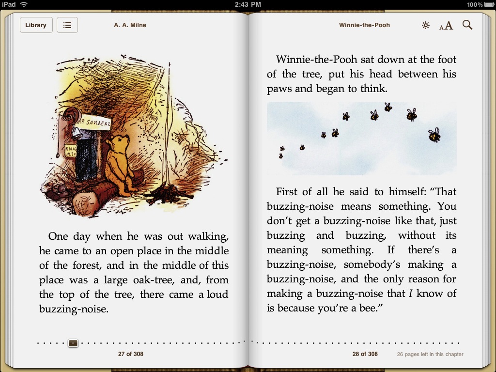 Steve Jobs se rozhodl nabídnout v iBooks knihu Medvídek Pú jako ukázkovou knihu, která byla dostupná zdarma díky kresbám, kterého jej doslova okouzlily. Právě ilustrace ukázala možnosti digitálních knih v aplikaci iBooks. Krásné barevné kresby, které Steve Jobs nikdy předtím u digitální knihy neviděl rozhodli o tom, že ji nabídl uživatelům zcela zdarma. Steve Jobs byl také tím, který vymyslel otáčení stránek v iBooks při listování knihou, které je pro iBooks typické. Bohužel jak Cue podotkl, nyní otáčení stránek ve starém stylu zmizí, koncem roku se totiž objeví nové iOS 7 a to nabídne také přepracovanou aplikaci iBooks.