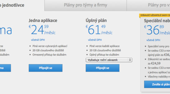 Pak se tu řeší, že licence na Adobe balík stojí 19.000 ročně. Vždyť to je 1.600,- / měsíc. To šikovný grafik musí vydělat za jedno dopoledne!
