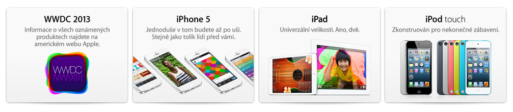 Zatím co veškeré zpravodajské servery přinášeli co nejaktuálnější informace z WWDC, oficiální česká stránka společnosti Apple to opět vyřešila po svém. Na Apple.cz se zkrátka objevila informace o tom ,že informace o veškerých představených produktech společnosti Apple na WWDC naleznete na oficiálních stránkách Apple.com. Je sympatické, že nám Apple.cz otevřel internetový obchod, na druhou stranu zase Apple nevydává až tolik novinek za rok, aby je lidé z Apple.cz nemohli přeložit a nabídnout na svém webu. Pokud si navíc myslíte, že tiskové zprávy které chodí našemu serveru z Apple.cz jsou v našem rodném jazyku, bohužel se pletete, Apple.cz pouze přeposílá anglické texty z Apple.com Na druhou stranu se zase můžete zdokonalit v angličtině.