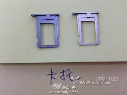Čínsky portál Weibo.com dnes zverejnil fotografie viacerých komponentov pre budúci model telefónu iPhone. Séria fotografii odhaľuje flex kábel pre Home Button, sloty pre nano-SIM kartu, fyzické tlačítka na ovládanie hlasitosti a WiFi anténu nového zariadenia. Novinkou je v tomto prípade predovšetkým fotografia slotov pre SIM karty. Na fotografii je jasne vidieť dvojicu komponentov v tmavofialovej a svetlofialovej farebnej verzii. Pokiaľ sa tieto komponenty preukážu ako skutočné, na septembrovej konferencii môžeme očakávať ohlásenie viacerých farebných variantov telefónu iPhone 5S, a pravdepodobne uvidíme aj novinku, lacnejší iPhone.