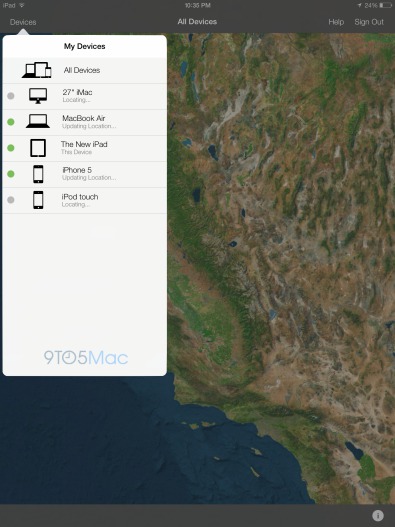 Medzi ďalšími zmenami môžeme očakávať zmenu prostredia v aplikáciách Find my iPhone a Find my Friends. Tieto dve aplikácie by mohli po novom nadobudnúť vzhľad, ktorý by ponúkol veľmi klasické, veľmi čisté prostredie, ktoré bude dostupné buď v bielej, alebo tmavej farbe. Ako sa však zdá, 9to5mac sa v tomto prípade môže mýliť, keďže Apple ukázal prototyp aplikácie Find My iPhone už na konferencii WWDC. Snímok, na ktorom je vidno novú verziu aplikácie Find my iPhone, nájdete nižšie. Čo však určite zamrzí, je snaha zbaviť sa skeumorfizmu z aplikácie iBooks. Práve iBooks môžeme pokladať za jedinú aplikáciu, ktorá jednoducho bez skeumorfizmu nie je krásna. S príchodom iOS 7 by sa však mal skeumorfizmus navždy vytratiť z aplikácie iBooks a spolu s ním pravdepodobne aj efekt otáčania strán. O tom, ako by mohla vyzerať aplikácia iBooks po aktualizácii v iOS 7, vám viac napovie snímok nižšie.