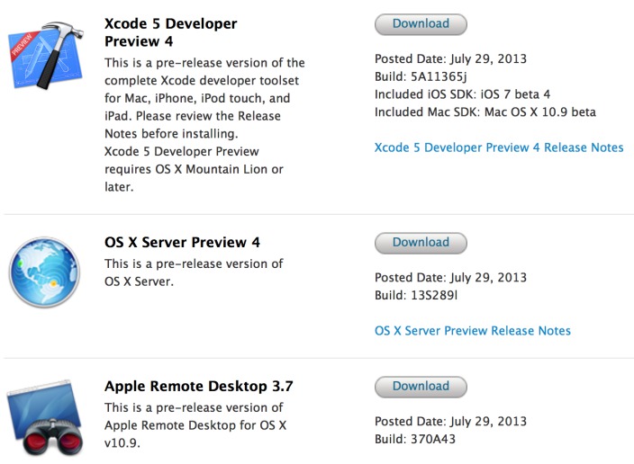Apple vydal nové testovací verze Xcode 5, OS X Server a Apple Remote Dektop 3.7. Všechny aplikace jsou určeny pouze pro vývojáře, kteří je mohou stahovat v Developer Center.