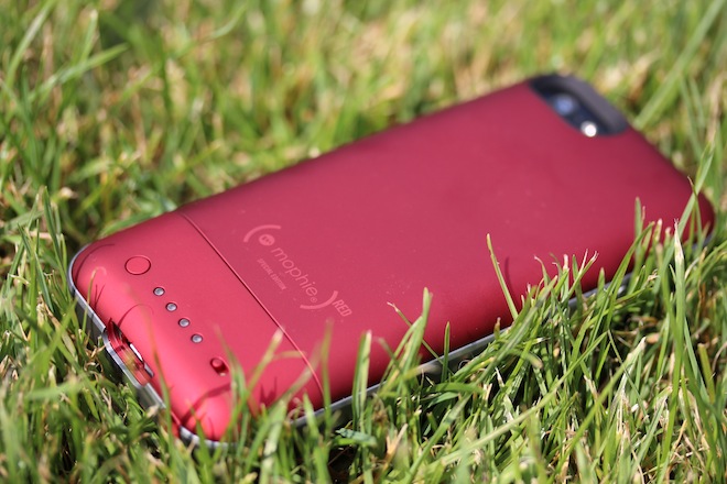 Co se týká samotného designu, je až neuvěřitelné, že se baterie dokázala vejít do tak tenkého těla obalu. V podstatě jediné co na první pohled naznačí, že je toto pouzdro něčím zvláštní je spodní část obsahující Lightning konektor. Osobně jsem testoval několik týdnů baterii ze speciální edice RED Product, se kterou jak naši čtenáři z předchozích článků ví, bojujete proti AIDS v Africe. Výtěžek z prodeje takto označených produktů putuje na pomoc organizacím, které řeší tento problém na území Afrického kontinentu. Červená verze nabízí skutečně velmi zajímavé efekty a barva se vám doslova mění před očima, pokud se na obal díváte na přímém slunci, je matný, pokud pod světlem umělého osvětlení, zdá se naopak lesklý. Co jistě ocení všichni, kterým se líbila zaoblená záda iPhone 3G a iPhone 3Gs je právě design obalu Mophie, který je taktéž zaoblený a velmi pohodlně se drží v ruce. Navíc materiál ze kterého je povrch obalu zajišťuje, že vám telefon jen tak nevyklouzne z ruky. Váha pouhých 95 gramů je ještě stále snesitelná i při denním používání a Mophie tak můžete používat jako běžný obal.
