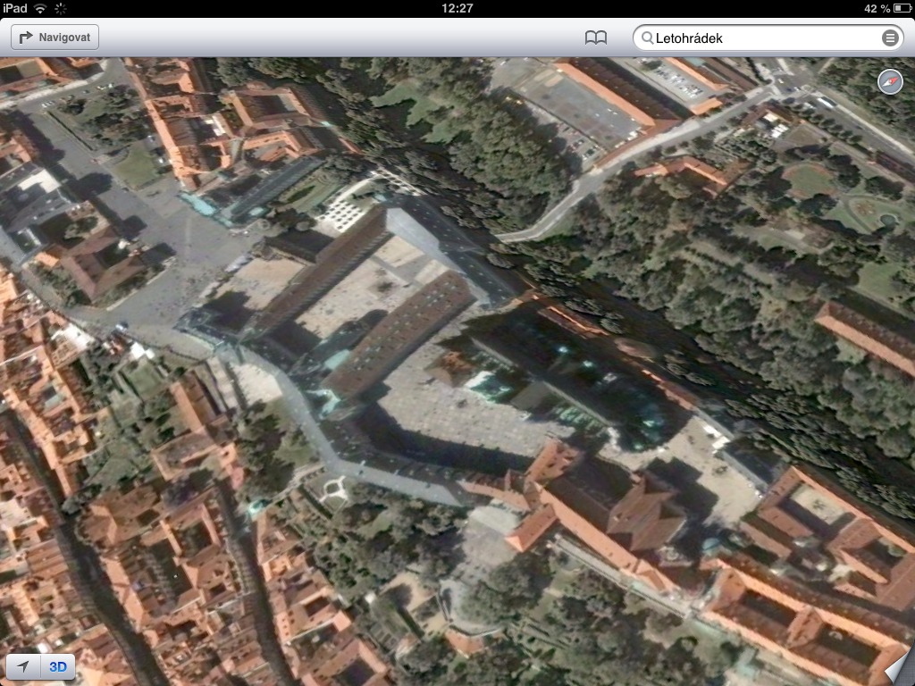 V momentě kdy koupil Apple společnost C3 Technologies zabývající se 3D mapováním, měla společnost C3 vytvořeno v trojrozměrném modelu již celou řadu měst. Podle Reuters dokonce v dubnu 2011 C3 vlastnila databázi s více než 100 městy, jejichž nejdůležitější části byly vytvořeny ve 3D. Mezi tyto města patří například Florencie, Helsinky, Oslo, Benátky, Vídeň a pro nás nejdůležitější, Praha. Právě Prahu a dalších několik měst se navíc podařilo zveřejnit v trojrozměrném obraze také na internetu, jako součást tehdejší prezentace C3. Jak vidíme tak Praha ve 3D od C3 je skutečně velmi povedená, tedy alespoň hrad na který se můžeme podívat na níže uvedeném obrázku. Otázkou tedy zůstává, proč když může vypadat Praha takto, vypadá ta moje na iPadu zcela jinak.
