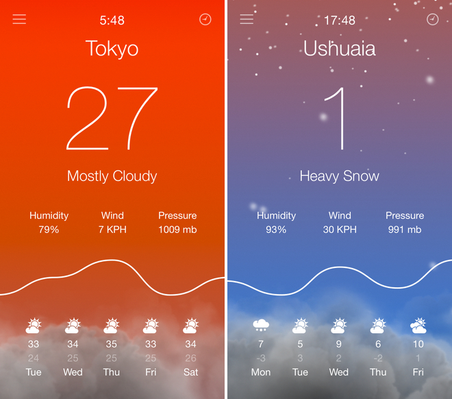 Nová aplikácia Počasie v iOS 7 sa značne odlišuje od všetkých predchádzajúcich, a tentoraz si berie veľkú inšpiráciu z aplikácie Yahoo! Weather. Apple však aplikáciu obohatil o veľmi zaujímavé animácie počasia, a tak sa niektorí užívatelia iOS 6 a starších zariadení sťažujú, že prístup k takejto aplikácii nemajú. Nuž, aj na to je tu aplikácia. Istý vývojár sa rozhodol inšpirovať práve operačným systémom iOS 7 a priniesol tak veľmi zaujímavú odpoveď na Počasie, tentoraz pre všetkých používateľov iOS 6.0 alebo novších verzií systému.