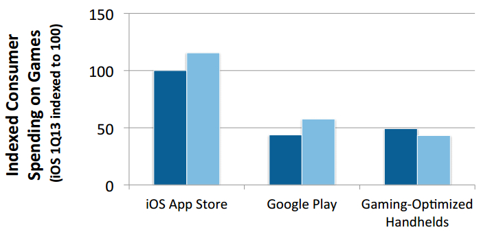 Štatistika ukázala aj mnohé ďalšie zaujímavé výsledky. Nintendo 3DS je momentálne najobľúbenejšou prenosnou konzolou, a jej popularita začína rásť v západnej Európe. Tržby sú však stále nižšie ako v prípade iTunes App Store a Google Play. Pokiaľ by sme totiž spojili tržby z predaja hier na platformy iOS a Android, získame štvornásobne väčšie číslo ako v prípade populárnej konzoly. Zaujímavosťou je aj to, že až 40% všetkých aplikácií, ktoré si na smartfón stiahli užívatelia za spomínaný štvrťrok, sú hry, a sú to práve ony, ktoré sa postarali o viac ako 70% tržieb z digitálnych obchodov App Store a Google Play.