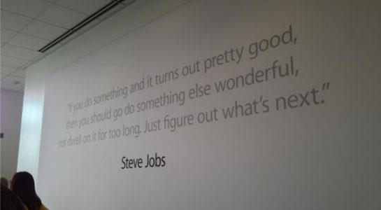 Tohtoročný iPhone event začína už za necelých 40 minút a aj to je dôvod, prečo sa Apple rozhodol už v tejto chvíli púšťať prvých novinárov do vnútra svojho konferenčného sálu Town Hall v budove 4 Infinity Loop. Novinári zo svetoznámeho tech portálu CNET už ale majú to šťastie byť vo vnútri budovy, a tak zverejňujú prvé zaujímavosti, ktoré si v nej všimli. Hneď na úvod to je pomerne zaujímavý citát Steva Jobsa: „Pokiaľ niečo vytvoríte a ukáže sa to ako dobré, mali by ste uvažovať o vytvorení niečoho ďalšieho skvelého, a nezdržovať sa na jednom mieste pridlho. Jednoducho musíte zistiť, čo je ďalšie.“