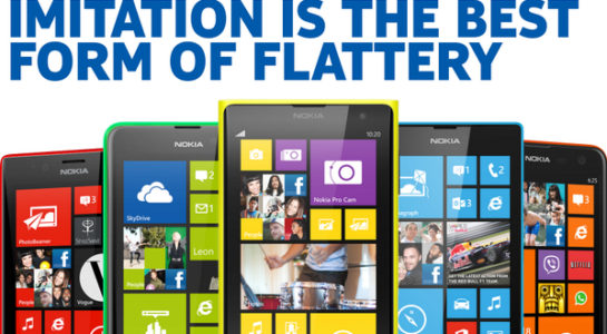 Ešte neubehol ani deň od ohlásenia nového iPhone 5C, a konkurencia naň už vytasila svoje zbrane. Microsoft a Nokia sa totiž spojili proti Applu a na internete zverejnili svoje vlastné reakcie na tento plastový telefón, a ako sa ukazuje, farebné pozadia a farebné kryty nie sú to, vďaka čomu by mal byť iPhone 5C výnimočný, respektíve revolučný. Konieckoncov, Nokia už ponúka svoje smartfóny Lumia niekoľko rokov v niekoľkých farbách, a všetky z nich majú aj čierny predný kryt. Nokia k tomuto kroku pridala slogan „Imitácia je ten najlepší spôsob lichotenia.“