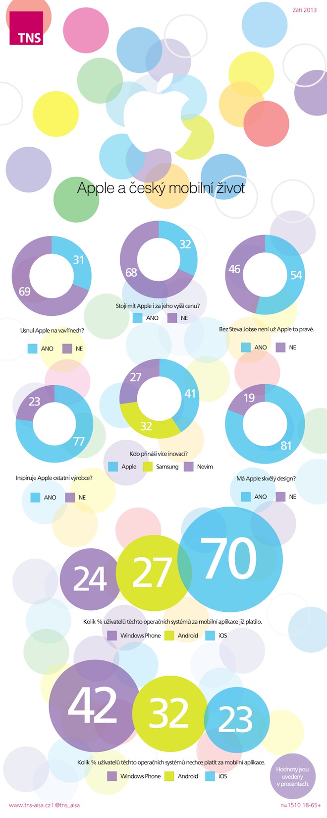 Společnost TNS AISA provedla zajímavý průzkum mezi českými spotřebiteli na téma Apple a český mobilní život. TNS AISA je přední společnost na trhu marketingových výzkumů a informací v České republice s více než dvacetiletou tradicí s tím, že její průzkumy využívá řada korporací, aby si dokázala udělat přesnou představu o zaměření svých produktů na daný trh. Agentura se zaměřila pouze na české spotřebitele ve věku 18 až 65 let, kterých se ptala na několik otázek ohledně společnosti Apple. Celkově bylo osloveno 1510 respondentů, což lze vzhledem k tomu, že i na předvolební a jiné výzkumy jen zřídka dosahuje počet oslovených více než tisíc, pokládat za nadprůměr.