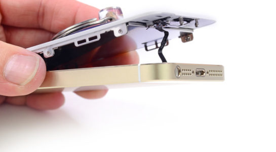 V prípade opravy iPhone 5s treba dávať o niečo väčší pozor pri odnímaní predného sklíčka, pretože sa tu nachádza ďalší kábel, spájajúci Touch ID snímač so zvyškom interných komponentov. Kábel je navyše tenký a tak je riziko jeho poškodenia väčšie. Apple tiež odstránil pútko na odlúpnutie batérie a namiesto neho použil množstvo lepidla, vďaka čomu je oprava problematickejšia. Samotná batéria nesie kapacitu 1 560 mAh pri 5,92 watthodinách a voltážou 3,8 V. Zaujímavosťou tiež je, že Apple má viacerých dodávateľov batérií, pretože jedna batéria u iFixIt pochádza od Desay Battery Co., a o druhú sa postarala spoločnosť Simplo Technology Inc. Napriek tomu, že z hľadiska poštu megapixelov je iSight fotoaparát rovnaký, aj tu došlo k zmene – Apple použil aktualizovanú verziu predchádzajúceho modelu od Sony s označením IMX145. Zaujímavosťou tiež je, že Apple v novom smartfóne použil úložisko od spoločnosti SK Hynix, v ktorej prednedávnom došlo k rozsiahlemu požiaru.