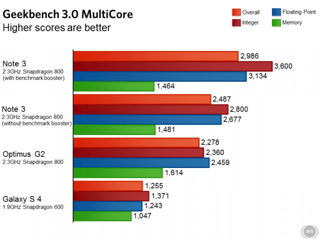 Samsung zrejme ani teraz nehrá veľmi čistú hru v benchmarkoch a zahraničný tech server Ars Technica ho opäť prichytil pri tom. Už na samom začiatku augusta/srpna server AnandTech zistil, že Samsung úmyselne zvyšuje výkon svojho Galaxy S4 pri benchmarkoch a prezentuje tak, že je telefón omnoho výkonnejší ako v skutočnosti. Samsung sa napriek faux pas zjavne nepoučil a skript nainštaloval aj do novinky Galaxy Note III, čo tentoraz nenechalo chladného ani Phila Schillera, senior viceprezidenta Applu pre marketing.