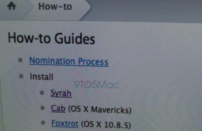 Update 10.9.1 by nemal iba opravovať chyby systému 10.9, ale tiež sa očakáva, že ponúkne možnosť blokovať iMessages a FaceTime hovory od určitých používateľov, presne tak ako to umožňuje iOS 7. 10.9.1 však nie je jediným systémom, ktorý má Apple vo vývoji, a podľa istého zdroja Apple už pilne testuje budúcoročný systém 10.10, momentálne známy pod krycím menom Syrah. Presne tak ako v prípade Mavericks, aj tentoraz sa Apple inšpiroval odrodami hrozna, keďže 10.9 niesla interné označenie Cabernet. Na fotografii, ktorú 9to5mac zverejnil, môžeme navyše vidieť, že krycie mená boli záležitosťou už pri minuloročnom Mountain Lion, ktorého krycí názov znel Foxtrot. K systému Syrah majú prístup len vybraní zamestnanci, pričom prvý testovací build im bol rozposlaný na začiatku septembra/září. Vývoj však zaznamenal výraznejší pokrok, a testeri mali doteraz obdržať približne 30 interných verzií, pričom Apple im každý pracovný deň pošle jeden alebo dva buildy. Golden Master verzia OS X Mavericks je v skutočnosti build 476, a tak je viditeľné, že Syrah má ešte čo dobiehať.