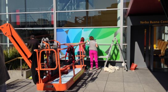 Čtenáři serveru Macrumors.com poslali do redakce první fotografie Yearba Buena Center, kde již začínají zaměstnanci instalovat výzdobu na nadcházející akci.