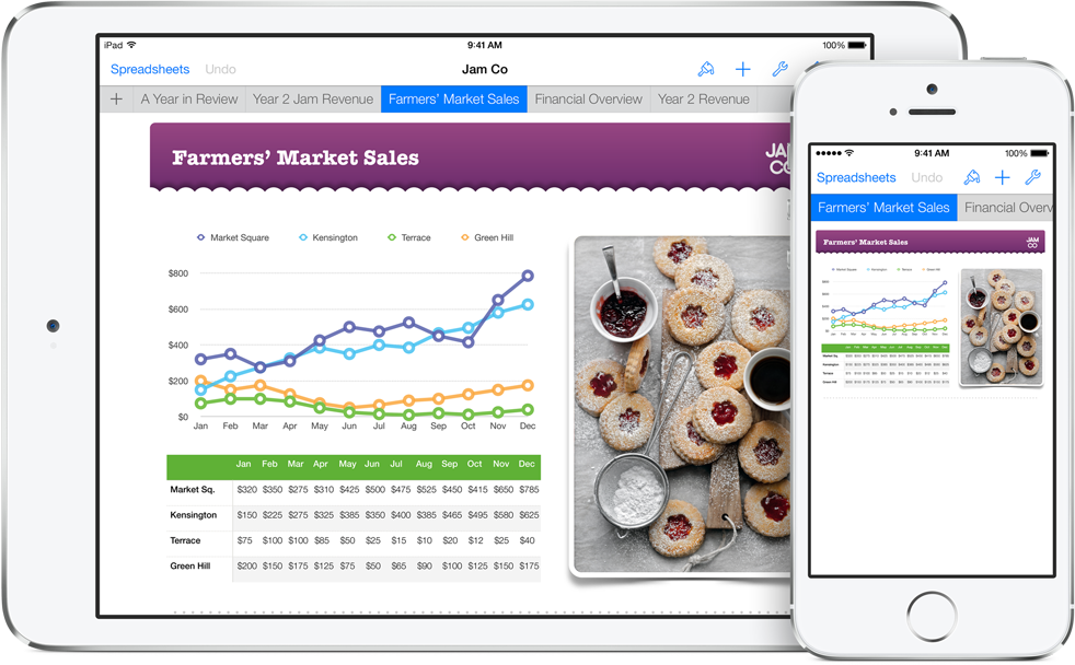 Softvér bol tentoraz prepísaný pre 64-bitovú architektúru a rovnakej zmeny sa dočkaj aj dizajn aplikácií. Ten sa odlišuje pri iOS a OS X a týka sa všetkých troch aplikácií – Pages, Numbers a Keynote. Zo softvéru sa vytratili akékoľvek známky Forstallovho skeumorfizmu a miesto toho sa obliekli do kabátu podľa gusta Jonyho Iva. Transparentnosť prostredia je prítomná a v prípade Pages sa stretneme s dizajnom podobným konceptu 9to5mac. Odlišuje sa však položením panelu s nástrojmi, ktorý sa tentoraz nachádza v spodnej strane softvéru, len tesne nad klávesnicou. Ikony aplikácií zo sady iWork sa drasticky zmenili oproti svojim predchodcom a zatiaľ čo v minulosti u nich prevládalo modré pozadie a 3D objekty, tentoraz sa stretávame s 2D grafikou a jasnými farbami, tak ako vo zvyšku systému iOS. Fľaštička s atramentom a 3D grafy sú preč a na ich mieste sa tentoraz objavilo píšuce pero a obyčajnejší plochý graf.