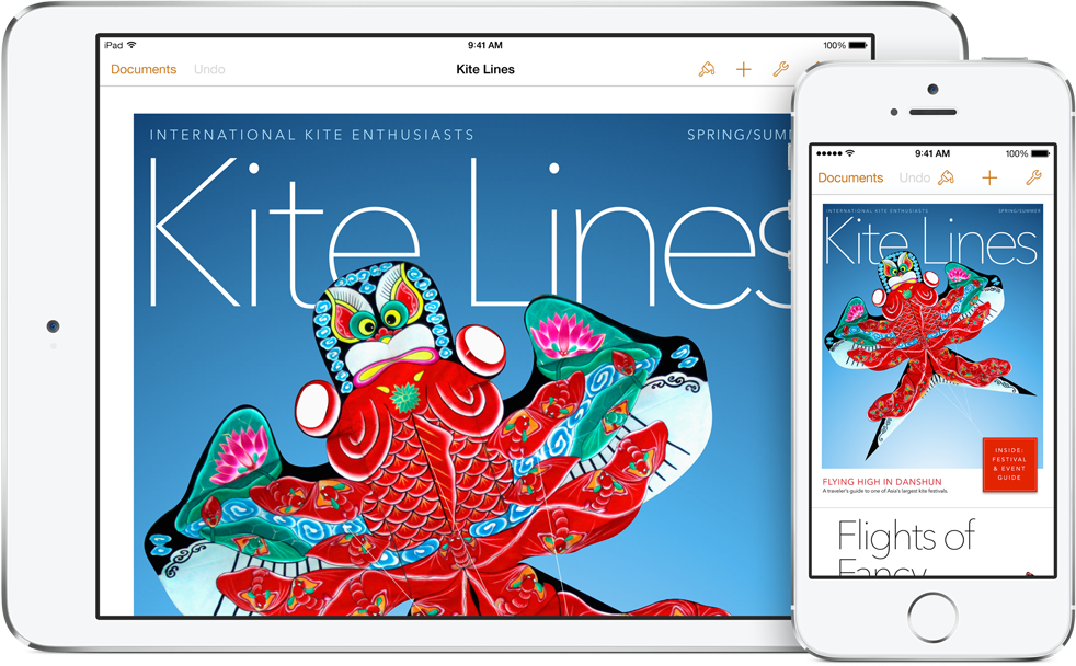 Softvér bol tentoraz prepísaný pre 64-bitovú architektúru a rovnakej zmeny sa dočkaj aj dizajn aplikácií. Ten sa odlišuje pri iOS a OS X a týka sa všetkých troch aplikácií – Pages, Numbers a Keynote. Zo softvéru sa vytratili akékoľvek známky Forstallovho skeumorfizmu a miesto toho sa obliekli do kabátu podľa gusta Jonyho Iva. Transparentnosť prostredia je prítomná a v prípade Pages sa stretneme s dizajnom podobným konceptu 9to5mac. Odlišuje sa však položením panelu s nástrojmi, ktorý sa tentoraz nachádza v spodnej strane softvéru, len tesne nad klávesnicou. Ikony aplikácií zo sady iWork sa drasticky zmenili oproti svojim predchodcom a zatiaľ čo v minulosti u nich prevládalo modré pozadie a 3D objekty, tentoraz sa stretávame s 2D grafikou a jasnými farbami, tak ako vo zvyšku systému iOS. Fľaštička s atramentom a 3D grafy sú preč a na ich mieste sa tentoraz objavilo píšuce pero a obyčajnejší plochý graf.