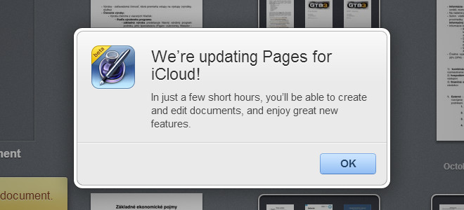Webová verzia iCloud sa vždy snažila imitovať existujúce iOS aplikácie a práve to má na svedomí, že sa Apple rozhodol užívateľom na internete poskytnúť kancelárske programy s prakticky rovnakým prostredím ako na iOS. Táto skutočnosť však začala biť do očí po tom, ako sa prakticky celé prostredie s výnimkou iWork prispôsobilo grafike iOS 7, a práve to dnes Apple napraví spolu s uvedením novej verzie aplikácií Pages, Numbers a Keynote zo sady iWork pre iOS. Toto zároveň spôsobilo, že Apple dnes potichu pozastavil funkcionalitu internetovej služby a používatelia, ktorí chceli editovať alebo vytvárať svoje dokumenty, sa ocitli zoči-voči novej informatívnej hláške.
