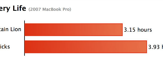 Že OS X Mavericks skutočne predlžuje výdrž batérie v MacBookoch, nie je žiadny reklamný ťah, ale holý fakt. O tejto zmene sa na vlastné oči presvedčil redaktor serveru Ars Technica, ktorý vo svojej obsiahlej recenzii nového OS X Mavericks spomenul aj túto skutočnosť. Redaktor sa rozhodol podrobiť nový systém testu, v ktorom čelil rovnakým úlohám ako jeho postarší konkurent, OS X 10.8.5 Mountain Lion. Oba prístroje mali podľa neho nainštalovaný Flash Player, ktorý je aj dnes akousi samozrejmosťou na webe.