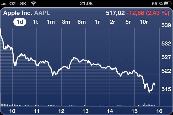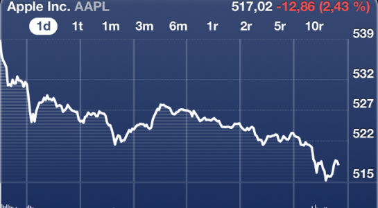 Iba deň po ohlásení finančných výsledkov za posledný kvartál fiškálneho roku 2013 sa hodnota akcií spoločnosti Apple prepadla o 2,43%, teda o $12,86 na akciu. Hodnota akcií AAPL po zavretí burzy tak činí 517,02 dolárov, zatiaľ čo pár minút po otvorení burzy sa ich cena vyšplhala na $538,57.