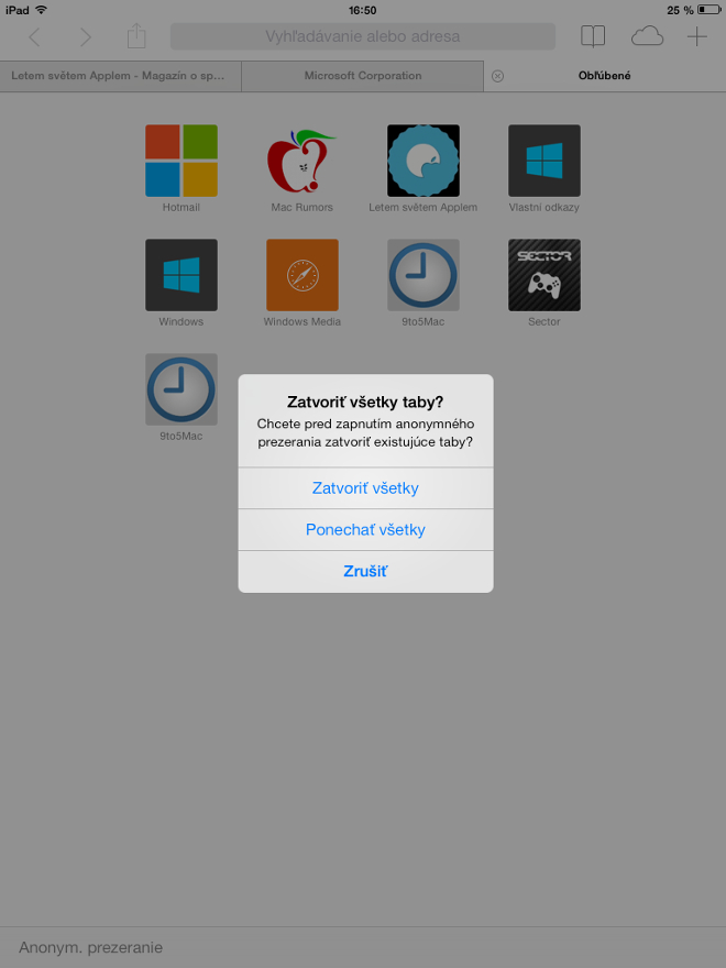 Súkromné prehliadanie začalo Conanovi O’Brienovi chýbať zrejme už pár mesiacov po predstavení iPadu mini a je veľmi pravdepodobné, že tento režim už v minulosti tento režim chýbal mnohým ľuďom. Apple sa nakoniec rozhodol užívateľom dopriať trochu súkromia po kauze PRISM a používatelia iOS 7 odteraz majú možnosť prehliadať internet anonymne. Nová vlastnosť sa skutočne ukrýva v prehliadači Safari, no nie všetci majitelia iOS 7 zariadení o nich môžu vedieť. Funkcia je dostupná na iPhone, iPode touch a aj na iPade.