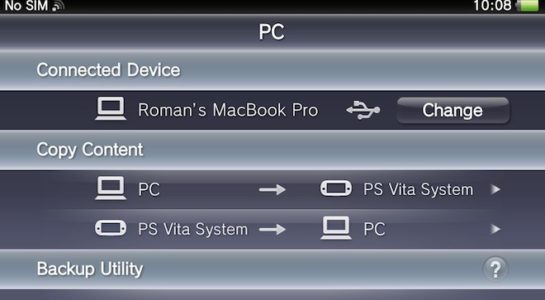 Procházení počítače tedy probíhá na dotykovém displeji Vity, což by zřejmě při denodenní synchronizaci nepatřilo mezi nejpohodlnější možnosti synchronizace, ovšem Vita je primárně herní konzole, do které uložíte pár fotografií, písniček a maximálně nějaký ten film. Synchronizace je tak zajímavým oživením a pokud ji provádíte jednou za měsíc určitě vás bude bavit. V momentě kdy budete hctít data synchronizovat den co den, budete zřejmě tento systém proklínat, to však u PS Vita nehrozí. Data z konzole je možné také zálohovat a provést kompletní zálohu tak, jak ji známe například z iPhone. V tom případě jednoduše zvolíte možnost Backup a veškerý obsah (záloha) PS Vita se nahraje do vašeho počítače tak, abyste mohli konzoli kdykoli obnovit.