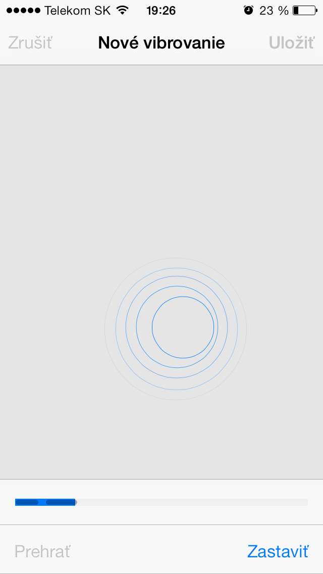 6. Ak sme si vybrali políčko na vytvorenie vybrovania a klikli naň, tak teraz nám už len stačí klikať na displej presne podľa toho ako chceme aby nám iPhone vibroval