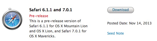 Apple má dnes skutočne deň plný aktualizácií a okrem nového iOS 7.0.4, iOS 6.1.5, iBooks a iTunes U, sa rozhodol vývojárom rozposlať novú testovaciu verziu Safari. Defaultný prehliadač systému OS X by mal byť podľa všetkého už v blízkej budúcnosti dostupný pre OS X Mavericks vo verzii 7.0.1 a pre OS X Mountain Lion a OS X Lion vo verzii 6.1.1. Informácie k novým verziám prehliadaču Safari zatiaľ nie sú známe, Apple však radí vývojárom, aby sa zamerali na kompatibilitu webových stránok, prístupnosť, autofill, prehliadanie a komentovanie PDF dokumentov, a na nastavovanie a používanie bodov prerušenia vo Web Inspector.