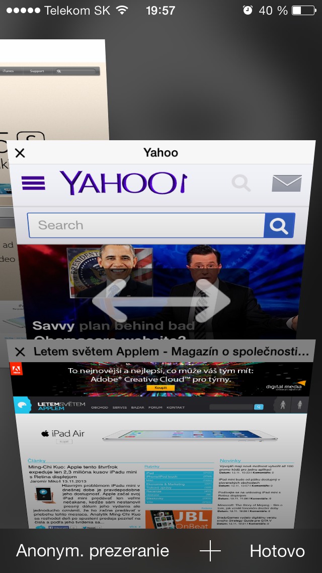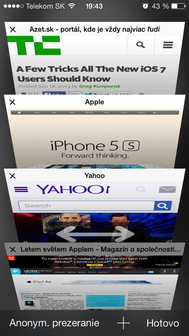 S príchodom nového dizajnu iOS 7 sa veľa zmenilo vo všetkých aplikáciách. Či už dostali nové funkcie, boli vylepšené alebo kompletne redizajnované. Väčšinou sa tento redizajn týkal hlavne UI v aplikáciách. Pribudli nám ale aj nové gestá, ktoré výrazne uľahčujú prácu s iOS zariadením. Väčšinou sa tieto gestá týkajú funkcií ako je vrátenie späť alebo prechádzanie z karty na kartu. No prišlo tu nové gesto a tým je zatváranie kariet či už v Multitaskingu alebo v aplikácii Safari. Gesto, ktorým sa zatvárajú minimalizované aplikácie zaručene každý z nás pozná. Ale čo tak gesto na zatváranie otvorených kariet v Safari. Poznáte ho? Ak nie tak si ho poďme priblížiť: