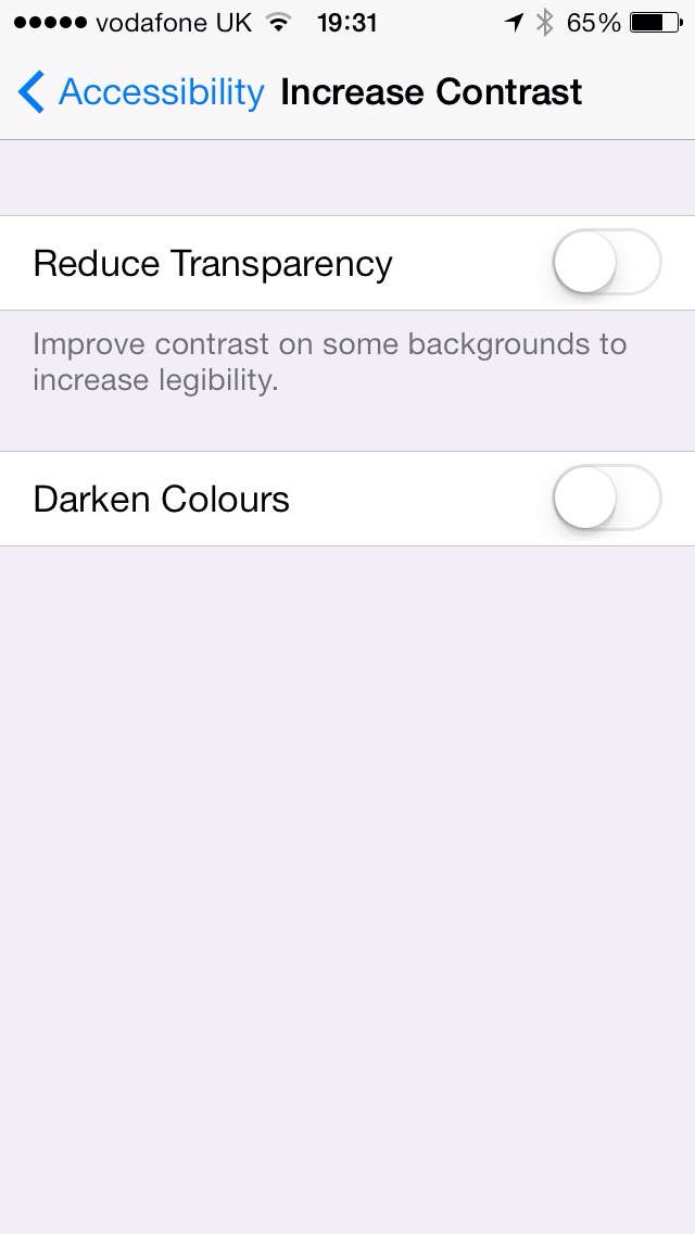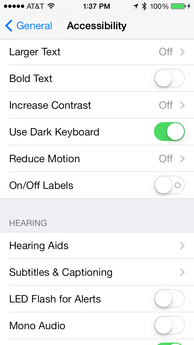 Zmien je hneď niekoľko a medzi novinkami sa okrem vizuálnych zmien objavujú aj pozitívne zmeny v plynulosti systému, a update taktiež prináša niekoľko nových funkcií. Jednou z prvých funkcií, ktorá bola žiadaná, bola možnosť aktivovať si čiernu klávesnicu v nastaveniach iOS zariadenia. Používatelia iPhone 5s si taktiež prídu na svoje, systém prináša možnosť nahrávať Burst Mode fotky do fotostreamu. Výhodou tiež je, že používatelia už nemusia po zmene systémového písma na tučné reštartovať celý prístroj, aby zmena nadobudla svoju platnosť. Medzi nepatrné grafické zmeny v systéme patria nové ikony Yahoo! a Flickr, ako aj informatívne texty na prázdnych stránkach v Notification Center. Ďalšou pozitívnou zmenou, ktorú ocenia predovšetkým používatelia iPadu, je opravenie grafickej chyby, ktorá trápila dock pri zatváraní aplikácie pomocou multi-touch gesta. Zmenu k lepšiemu sa rozhodol natočiť istý používateľ a zverejnil ju na sieti Vine. Apple sa taktiež rozhodol obohatiť nastavenia kontrastu, kde okrem možnosti zvýšiť kontrast (vypnúť priehľadné pozadia) pribudla aj možnosť aktivovať tmavšie farby.