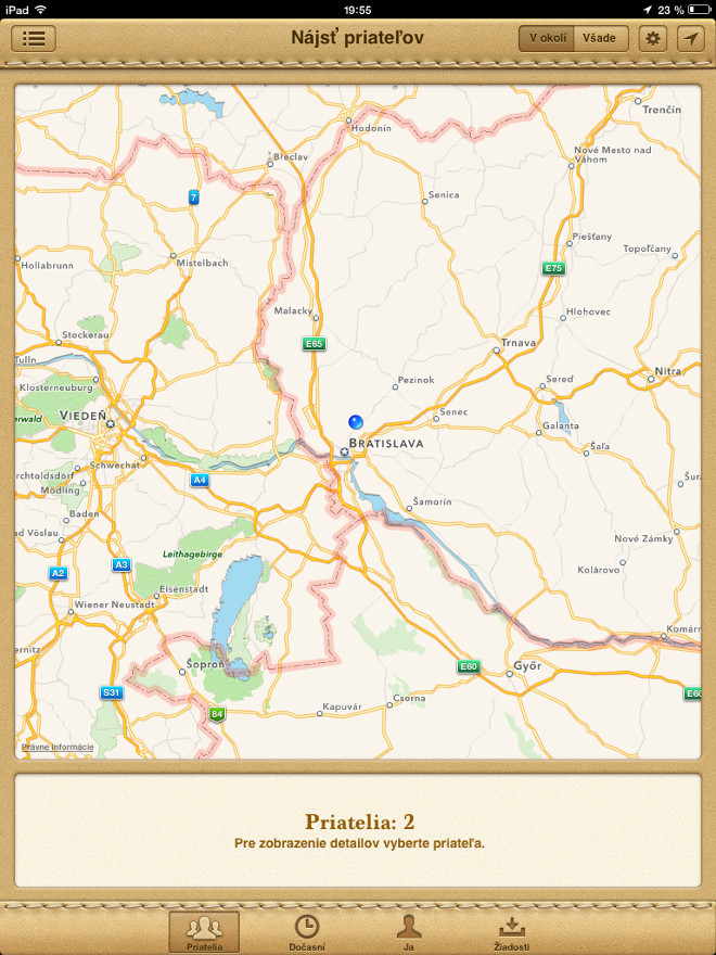 Aplikácia Find my Friends bola už od svojej prvej verzie veľmi známa a zároveň veľmi kritizovaná pre svoj kožený dizajn, ktorý na jednu stranu vyjadroval skeumorfizmus na plnej čiare, na druhú stranu vyvolával v niektorých užívateľoch veľmi divné dojmy spojené s westernovými filmami. Pretože bola v minulosti celá aplikácia skeumorfická, Apple bol prakticky nútený kompletne prepísať vzhľad prostredia, čo môžeme skutočne vidieť už pri prvom spustení. Prostredie aplikácie je veľmi čisté a veľmi odlišné v porovnaní so staršou verziou, či už na iPhone alebo na iPade. Aplikácia ostáva aj naďalej bezplatná, no po novom už vyžaduje iOS 7.0 a všetky novšie systémy.