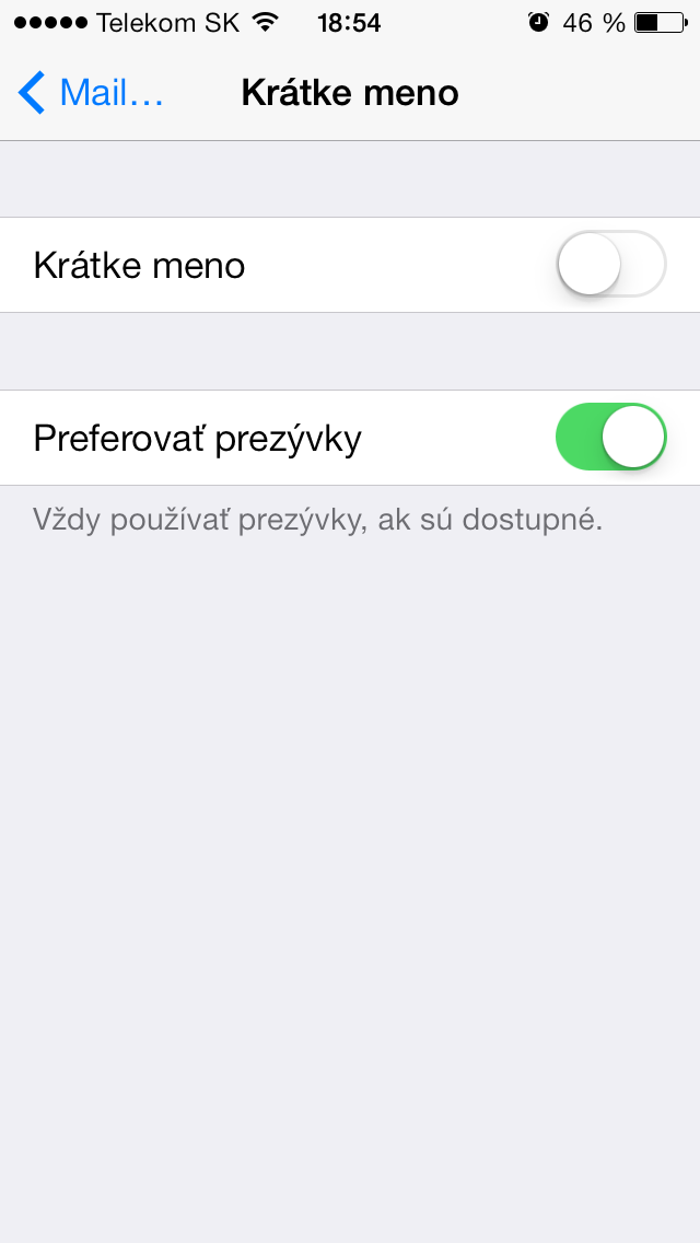 3. Nájdeme si kolónku Krátke meno a vypneme ju